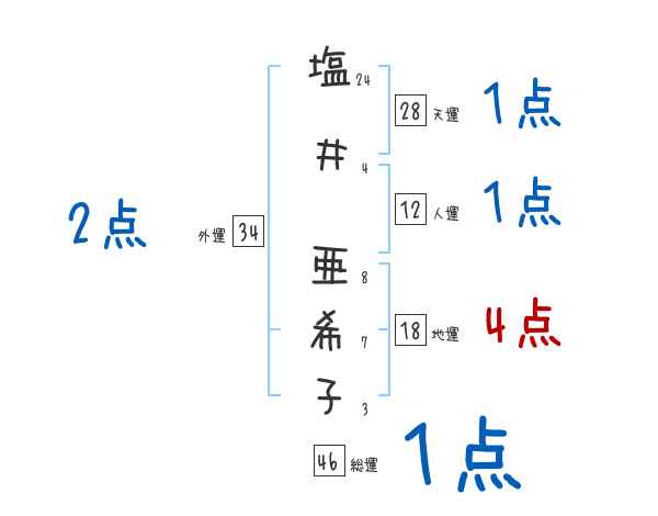 塩井亜希子さんの画数の鑑定結果