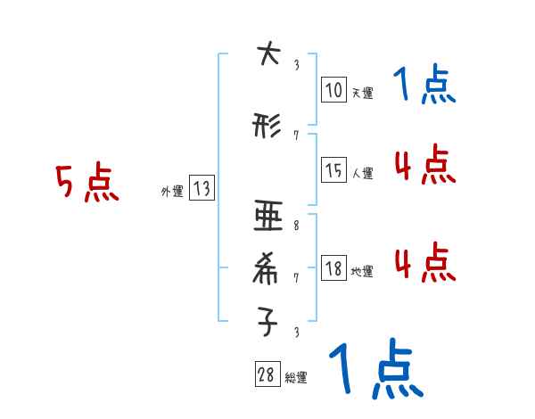 大形亜希子さんの画数の鑑定結果