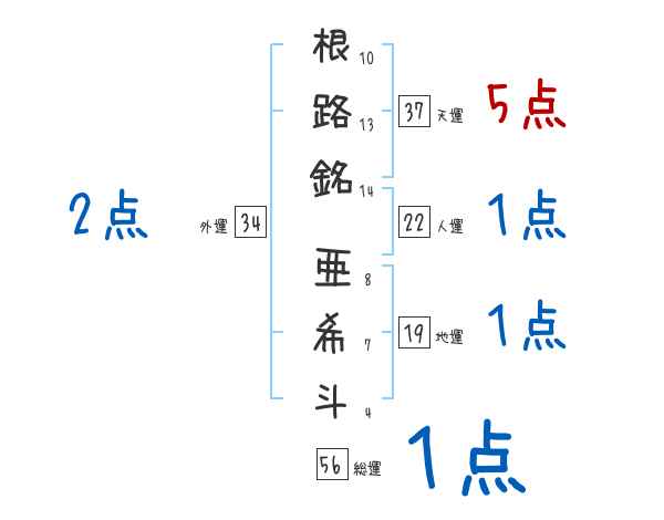 根路銘亜希斗さんの画数の鑑定結果