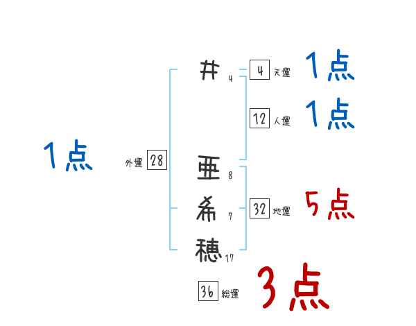 井亜希穂さんの画数の鑑定結果
