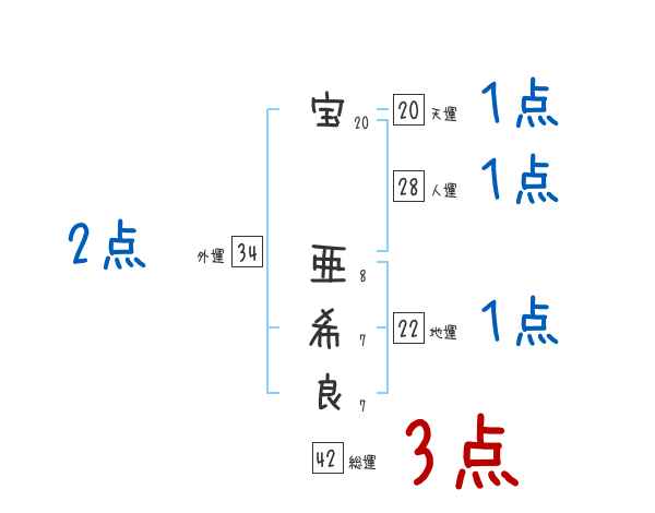 宝亜希良さんの画数の鑑定結果