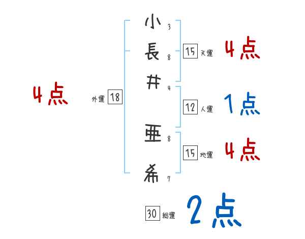 総運![]() | 小長井亜希さんの総運は30画の2つ星!浮き沈みの激しさに注意しましょう。 あなたの人生を表す1番重要な運勢です。生涯を通じて影響する総合運となり、主に50歳以降の晩年期に影響を及ぼします。 |