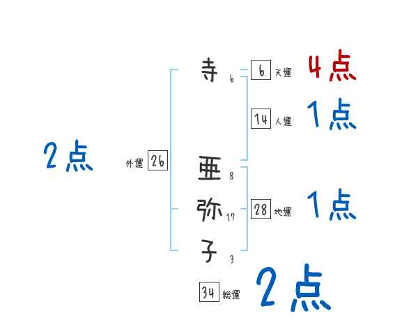 寺亜弥子さんの画数の鑑定結果
