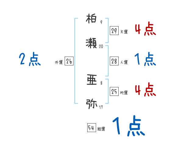 柏瀬亜弥さんの画数の鑑定結果