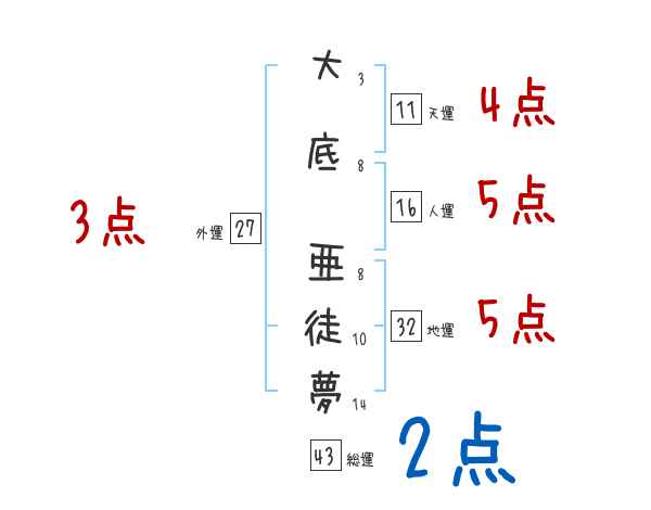 家系が持つ宿命的な運勢を表します。祖先から受け継いだ苗字ですので自分の力が及びません。家柄を象徴します。