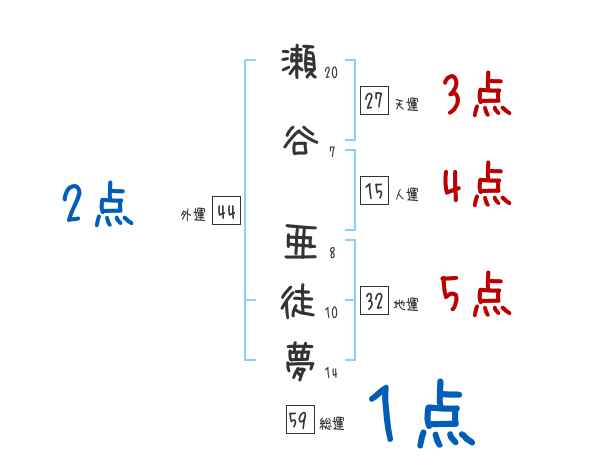 瀬谷亜徒夢さんの総運は59画の1つ星
