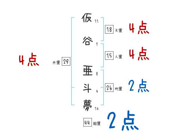 仮谷亜斗夢さんの画数の鑑定結果