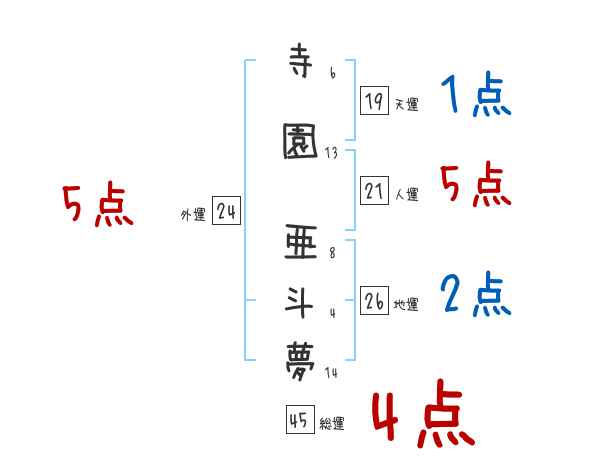 寺園亜斗夢さんの画数の鑑定結果