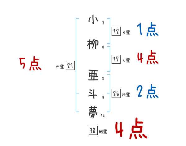 小栁亜斗夢さんの画数の鑑定結果