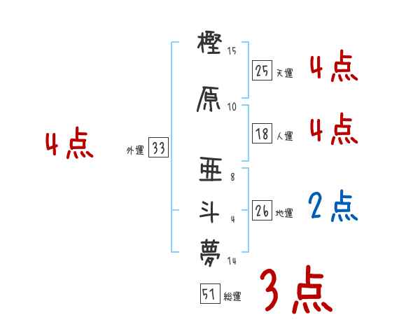 樫原亜斗夢さんの画数の鑑定結果