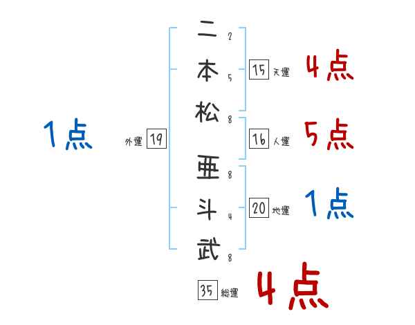 二本松亜斗武さんの画数の鑑定結果