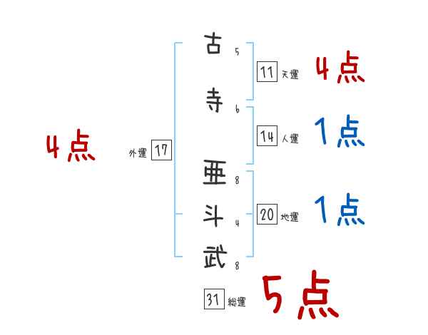 古寺亜斗武さんの画数の鑑定結果