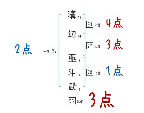 溝辺亜斗武さんの画数の鑑定結果