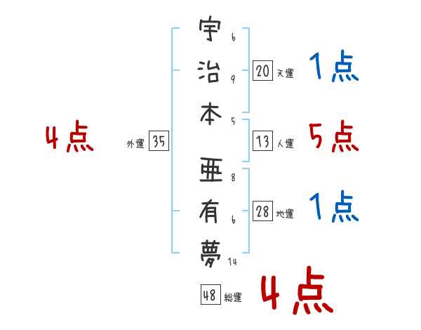 宇治本亜有夢さんの画数の鑑定結果