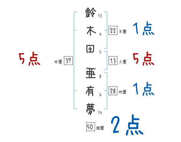 外運![]() | 鈴木田亜有夢さんの外運は37画の5つ星!努力家で順応性に優れる。現実的な考え方ができ忠実に物事をこなす。 生活面を象徴する運勢です。外部から受ける影響力を表し、結婚運、家庭運や職場、環境への順応性を表します。 |