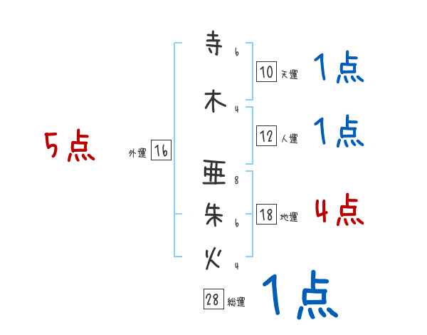 外運![]() | 寺木亜朱火さんの外運は16画の5つ星!人望が厚く大きく発展する。逆転成功が見える。 生活面を象徴する運勢です。外部から受ける影響力を表し、結婚運、家庭運や職場、環境への順応性を表します。 |