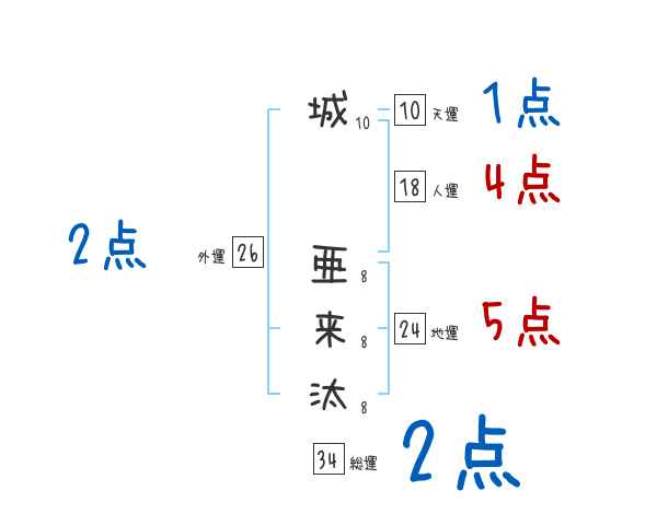 城亜来汰さんの画数の鑑定結果