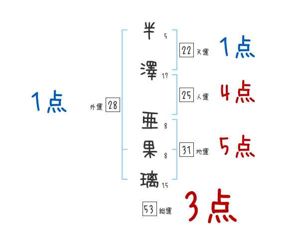 半澤亜果璃さんの画数の鑑定結果