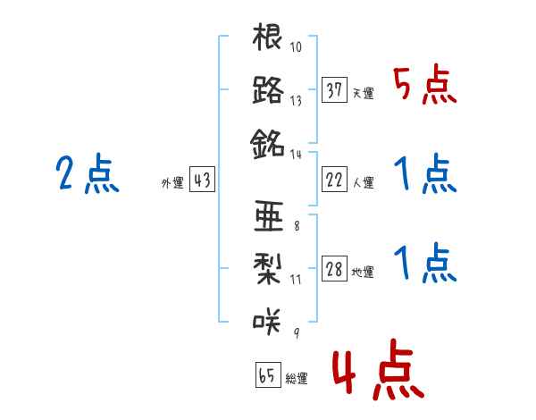 根路銘亜梨咲さんの画数の鑑定結果