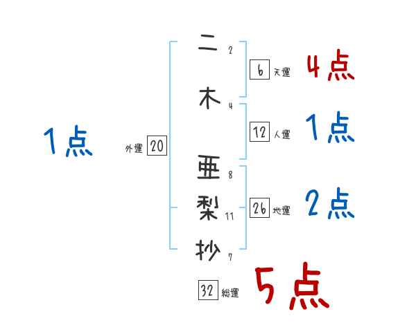 総運![]() | 二木亜梨抄さんの総運は32画の5つ星!柔軟性があり成功する。チャンスが多く金運が良い。 あなたの人生を表す1番重要な運勢です。生涯を通じて影響する総合運となり、主に50歳以降の晩年期に影響を及ぼします。 |