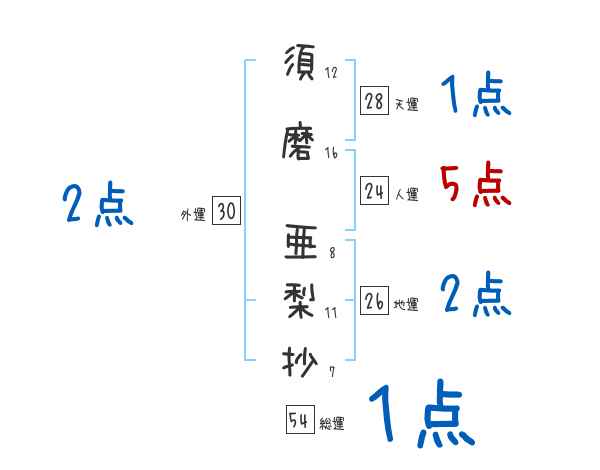 人運![]() | 須磨亜梨抄さんの人運は24画の5つ星!家庭運が良く順調な人生。金運にも恵まれる。 性格や才能などを表す2番目に重要な運勢です。人間関係や協調性、社会的な成功に影響します。主に20歳から50歳ぐらいまでの中年期の運勢を表します。 |