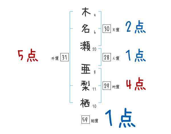 木名瀬亜梨栖さんの画数の鑑定結果
