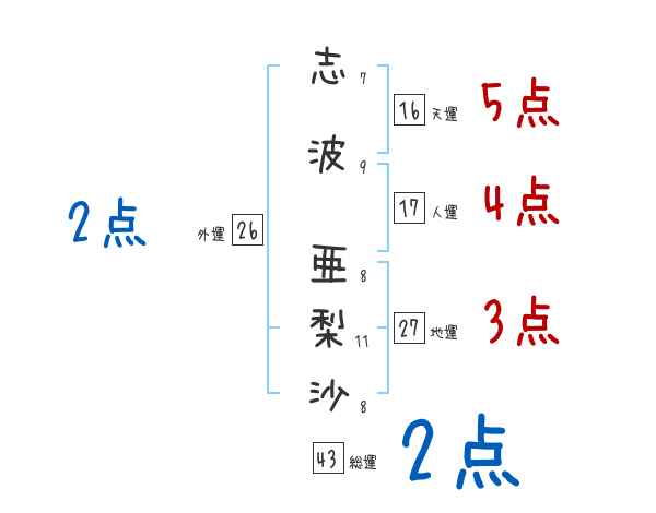 志波亜梨沙さんの画数の鑑定結果