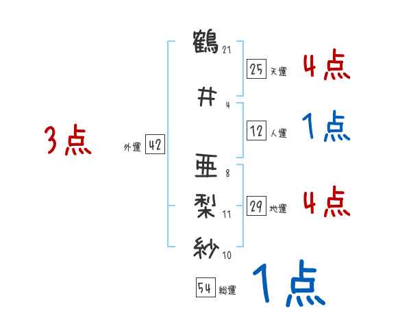 外運![]() | 鶴井亜梨紗さんの外運は42画の3つ星!病気に注意。多芸であるが消極的でおとなしい。 生活面を象徴する運勢です。外部から受ける影響力を表し、結婚運、家庭運や職場、環境への順応性を表します。 |