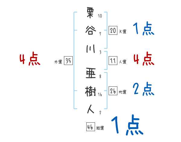 栗谷川亜樹人さんの画数の鑑定結果