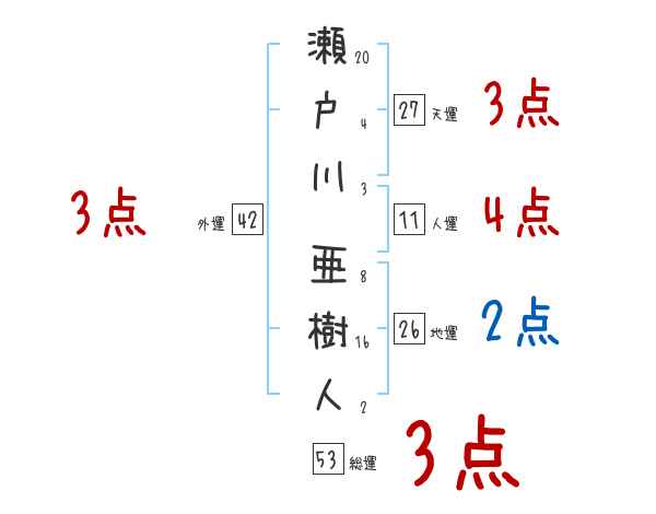 瀬戸川亜樹人さんの画数の鑑定結果