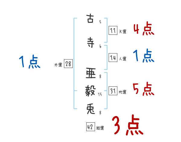 古寺亜毅兎さんの画数の鑑定結果