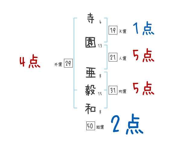 寺園亜毅和さんの画数の鑑定結果