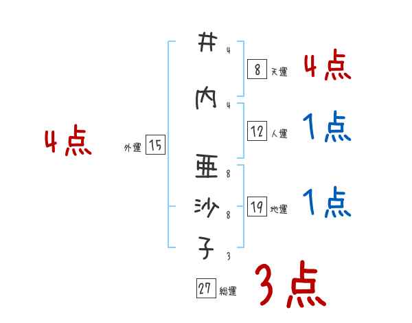 井内亜沙子さんの画数の鑑定結果