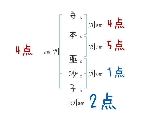 寺本亜沙子さんの画数の鑑定結果