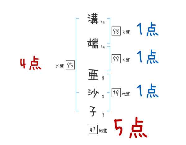 溝端亜沙子さんの画数の鑑定結果