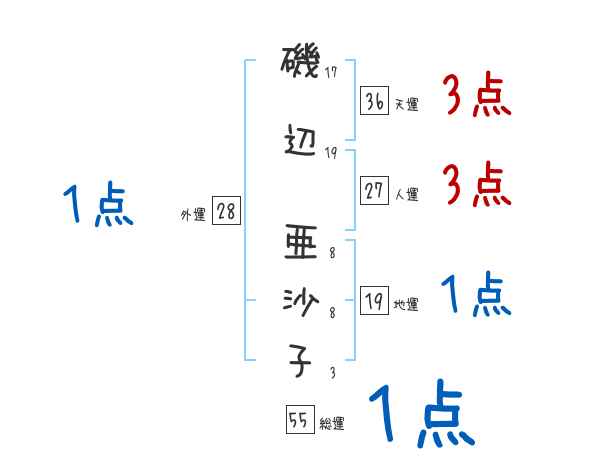 磯辺亜沙子さんの画数の鑑定結果
