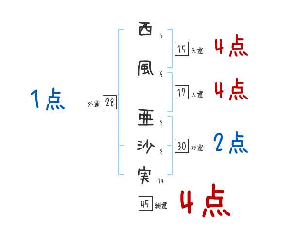 西風亜沙実さんの画数の鑑定結果