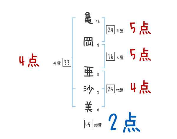 亀岡亜沙美さんの画数の鑑定結果
