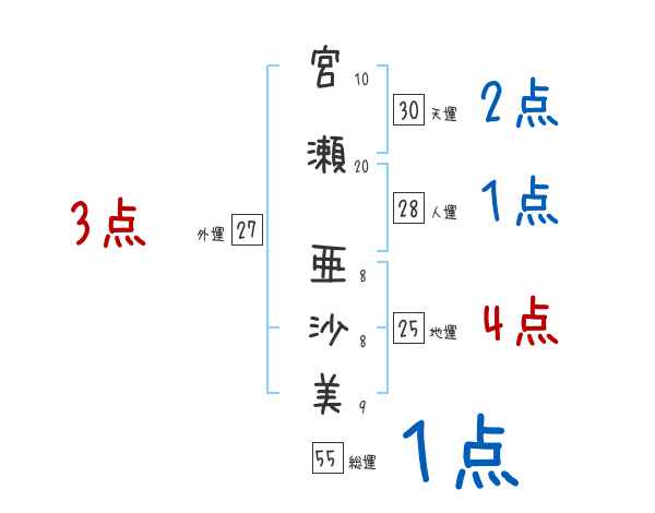 宮瀬亜沙美さんの画数の鑑定結果