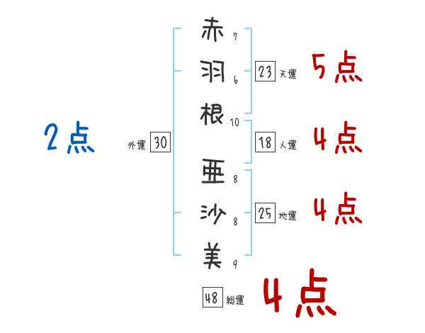 赤羽根亜沙美さんの画数の鑑定結果