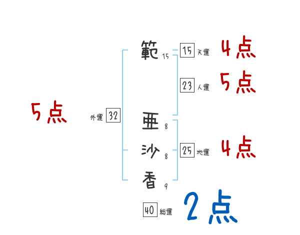 範亜沙香さんの画数の鑑定結果
