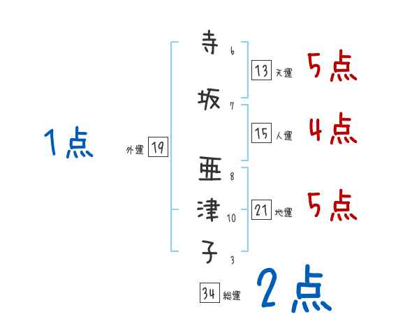 寺坂亜津子さんの画数の鑑定結果