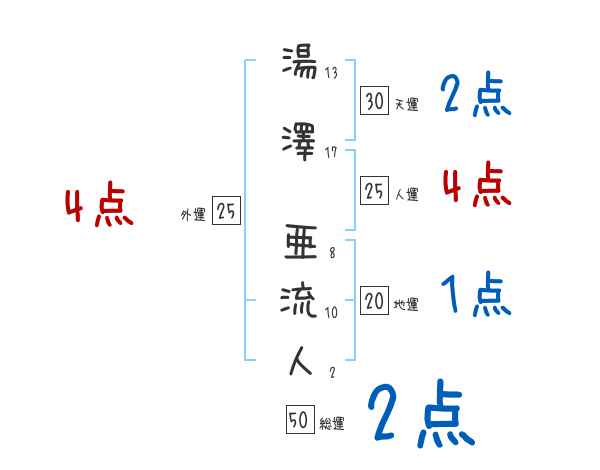 湯澤亜流人さんの画数の鑑定結果