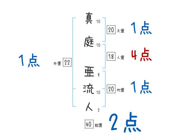 地運![]() | 真庭亜流人さんの地運は20画の1つ星!社交が苦手。人とは違った才能があり波乱万丈な人生かも。 個性を表す基礎的な運勢です。性格形成や対人関係、行動力など家庭環境に影響されます。主に誕生してから20歳くらいまでの若年期の運勢を表します。 |