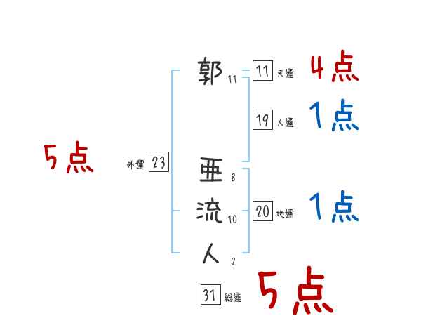 郭亜流人さんの画数の鑑定結果