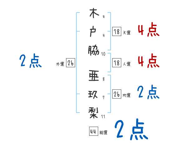 木戸脇亜玖梨さんの外運は26画の2つ星