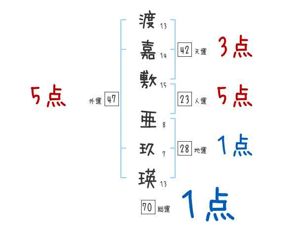 渡嘉敷亜玖瑛さんの画数の鑑定結果