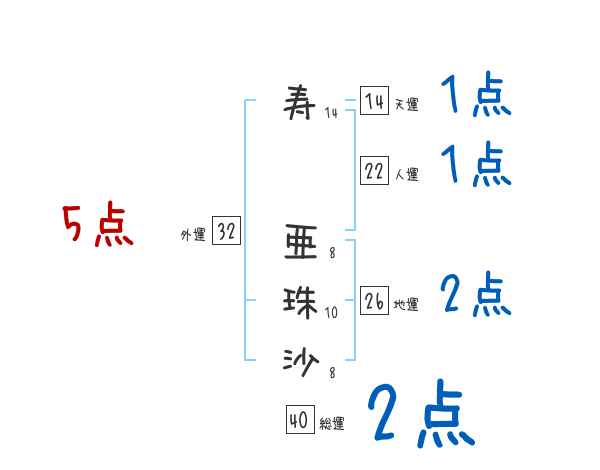 寿亜珠沙さんの画数の鑑定結果