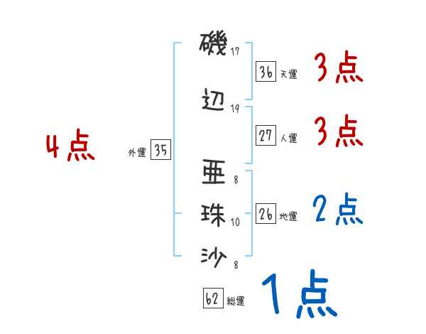 磯辺亜珠沙さんの画数の鑑定結果