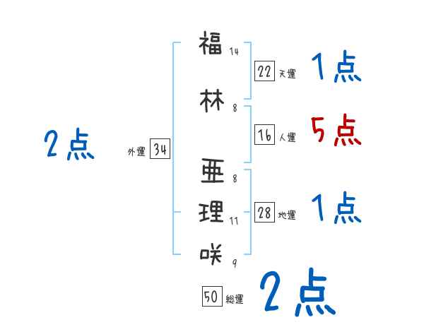 人運![]() | 福林亜理咲さんの人運は16画の5つ星!人望が厚く大きく発展する。逆転成功が見える。 性格や才能などを表す2番目に重要な運勢です。人間関係や協調性、社会的な成功に影響します。主に20歳から50歳ぐらいまでの中年期の運勢を表します。 |